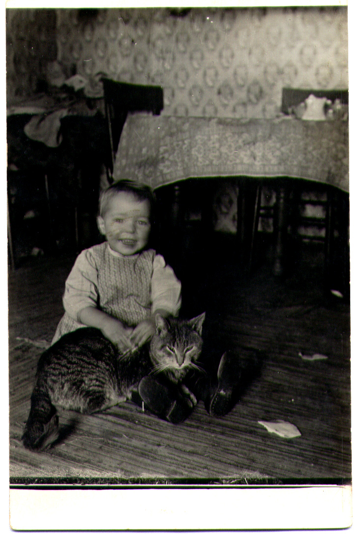 These are three photo postcards that I bought early in my research for my book Pets in America – they are still some of my favorites. These three postcards were never sent. Only one has any information on it, the brief instruction “Elmo and Snookums,” But all three pictures tell us a lot. I love that Elmo is “beeping” the nose of Snookums. (I suppose that the names could be the other way around….) The pleased expression of the toddler with the big cat on her lap and the calm expression of the cat reach across a hundred years. The lanky boy, in his outgrown play clothes, with his lanky dog pictures a long lost moment in the history of boyhood.